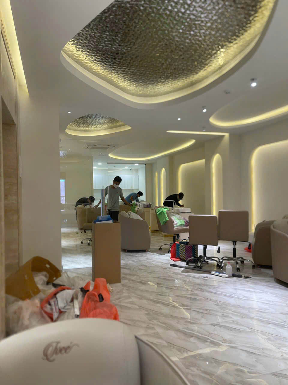 – Thứ tư, Công ty luôn trang bị đầy đủ các loại máy móc, thiết bị phục vụ cho công cuộc vệ sinh, cam kết chỉ sử dụng hóa chất tẩy rửa an toàn với sức khỏe con người.